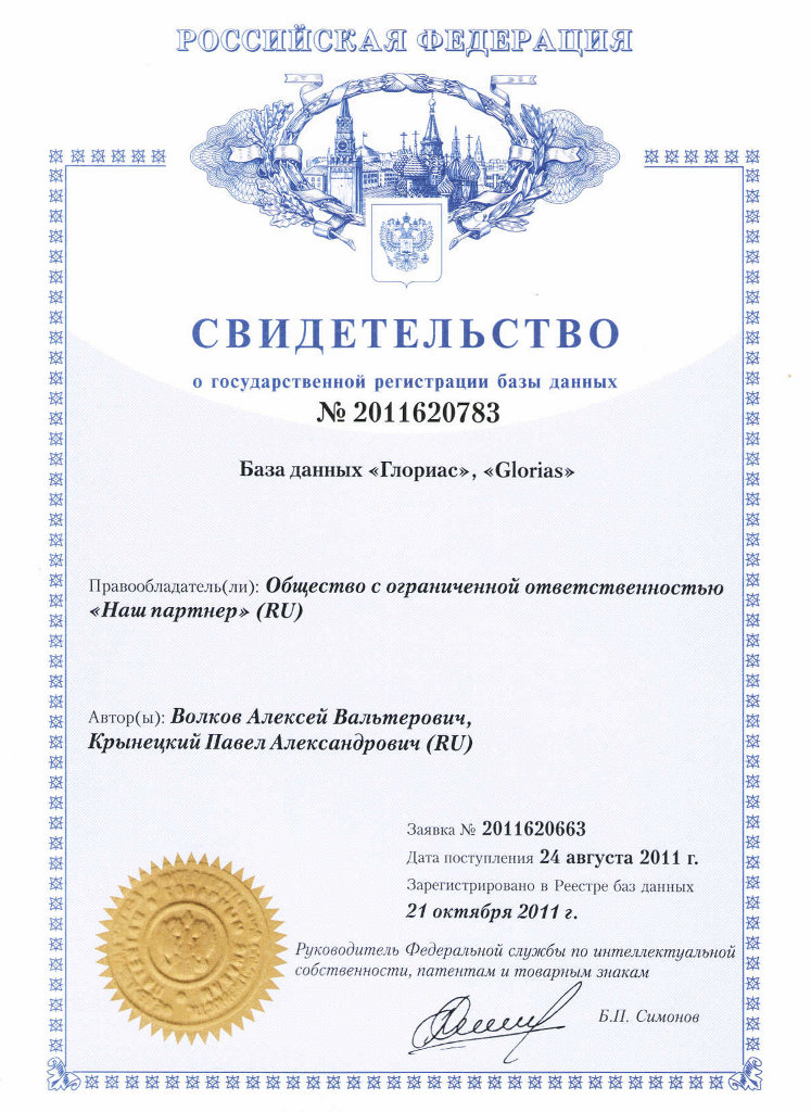 Программные продукты Glorias® сертифицированы и аттестованы на соответствие требованиям законодательства РФ по защите персональных данных.